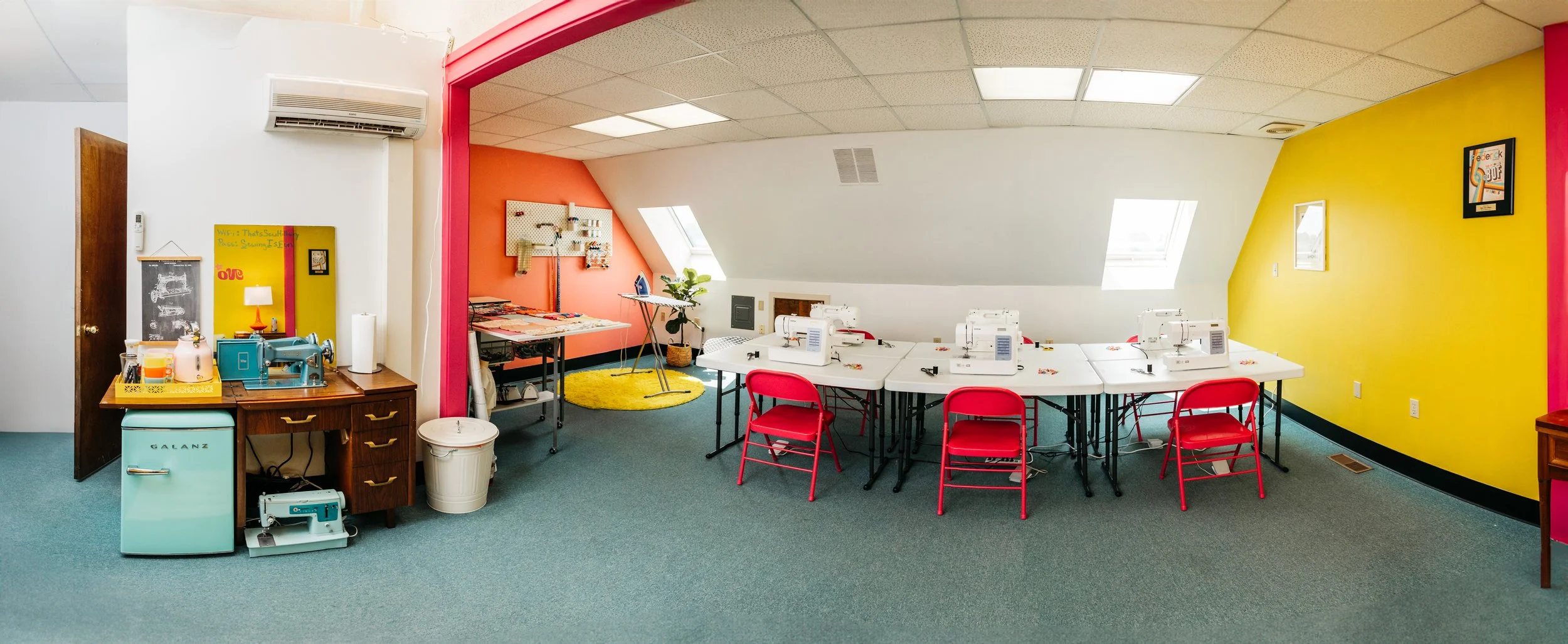 You’re welcome to bring your own sewing machine or use one of the studio machines—whatever makes you most comfortable. All studio tools are available for your use, too.